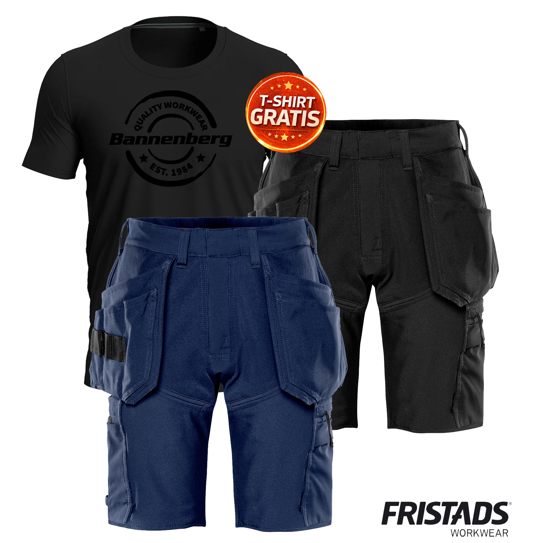 Fristads Handwerker-Stretch-Shorts 2598 LWS – 4-Wege-Stretch & Ripstop – T-Shirt gratis